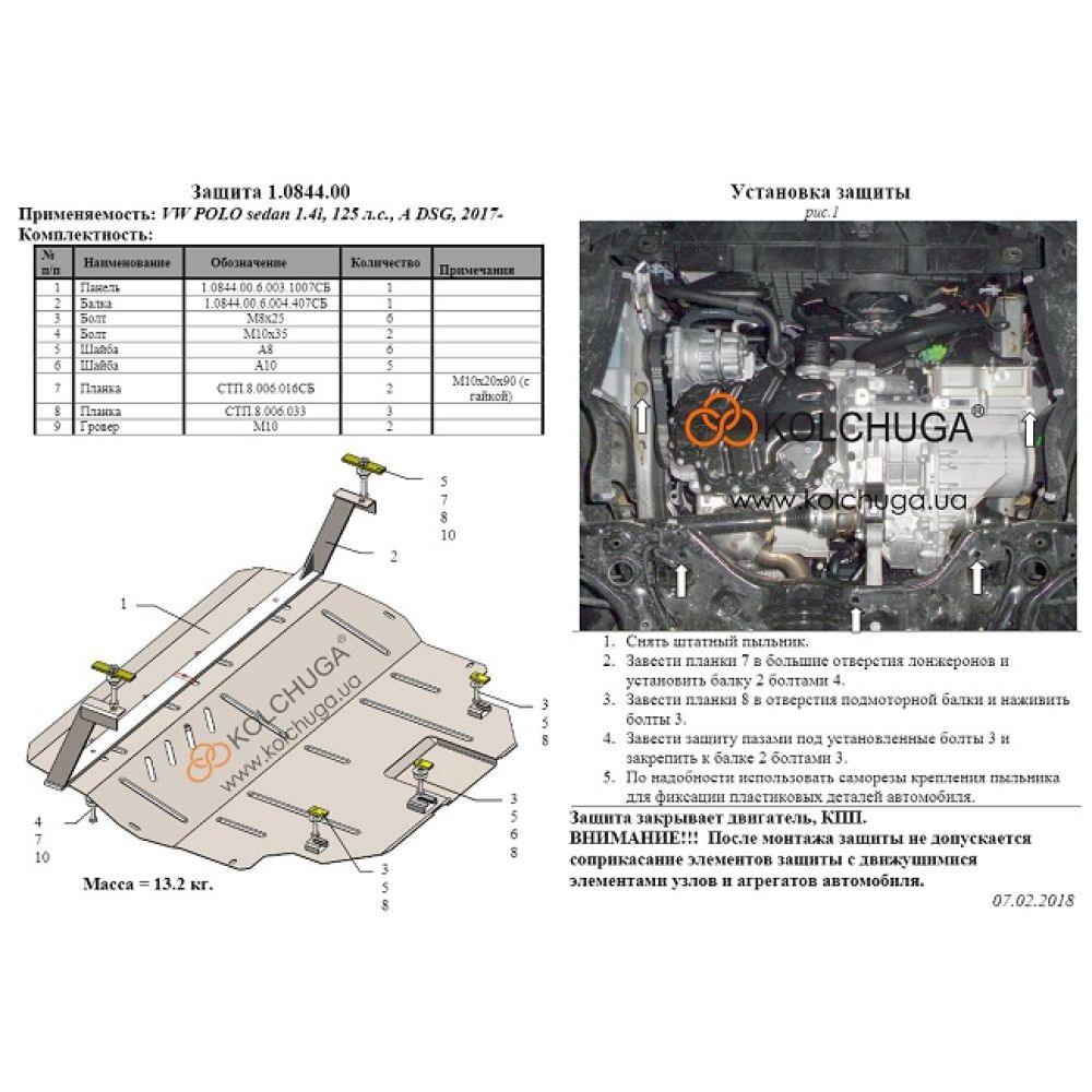 Защита моторного отсека для Volkswagen Polo '17- седан, V-1,4і, только DSG, от Украинского производителя Кольчуга. Защита двигателя картера Kolchuga изготавливается из высококачественных материалов, используя холоднокатаную сталь толщиной в 2 мм и с наружи покрыто порошковым напылением, для того чтобы избежать, коррозию металла. Все защиты при производстве покрываются специальным антикоррозийным покрытием. Металлическая защита намного эффективней и прочнее, нежели пластиковая, и более, устойчивей к дорожным условиям ямы, камни, сугробы, вода.