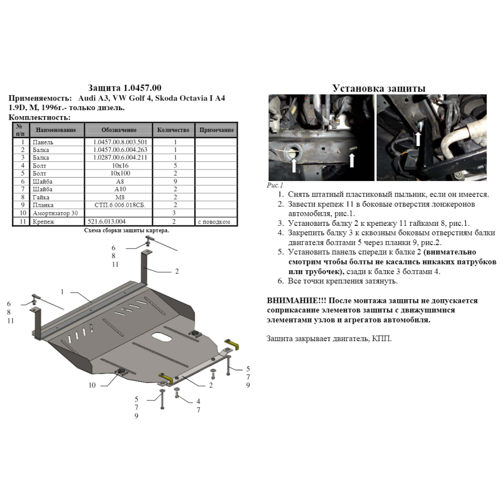 Установка и крепление – защита двигателя Кольчуга устанавливается в штатные места на днище автомобиля с помощью специальных крепежей, которые идут в комплекте и предусмотрены заводом производителя. В установке не понадобится дополнительно дорабатывать сверлить сваривать и так далее.