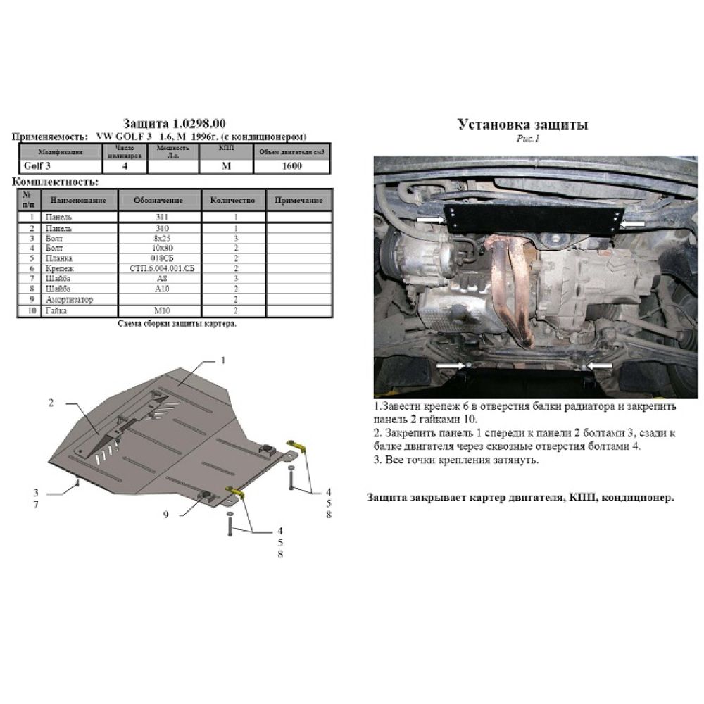 Защита двигателя, радиатора и КПП для Volkswagen Golf 3 '91-97, V-1,4; 1,6; 1,8; 2,0, (Кольчуга)