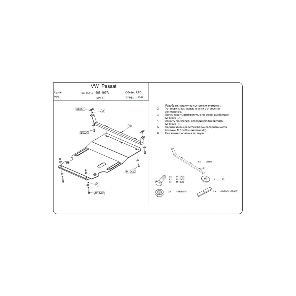 Защита двигателя, радиатора и КПП для Volkswagen Passat B3/B4 '88-96, V-1,9D, (Кольчуга)