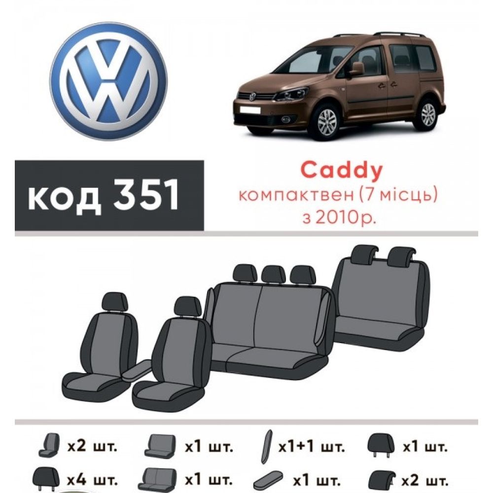 Авточехлы для салона Volkswagen Caddy '10-15, 7 мест, из экокожи Eco Prestige (Элегант)