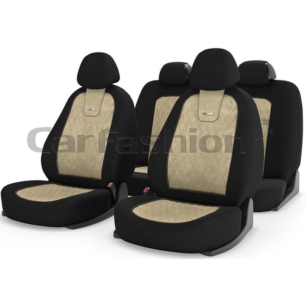 Универсальные чехлы на сиденья автомобиля, CarFashion Colombo бежевый / черный / бежевый премиум класса. Изготовлены из высококачественного автомобильного материала Алькантара плюс полиэстер. Благодаря изысканному дизайну универсальных чехлов вы за минуту пере образуете ваш салон в незабываемый вид. Чехлы очень легко и быстро крепятся, и вам не понадобится помощи в установке. Универсальные чехлы CarFashion прекрасно сочетаются как с кожаным салоном, так и с тканевым. У вас есть возможность выбрать любой цвет, который вам максимально подойдет.