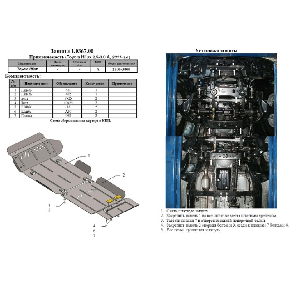 Захист двигуна, КПП для Toyota Hilux '11-15, V-2,5D; 3,0D, (Кольчуга)