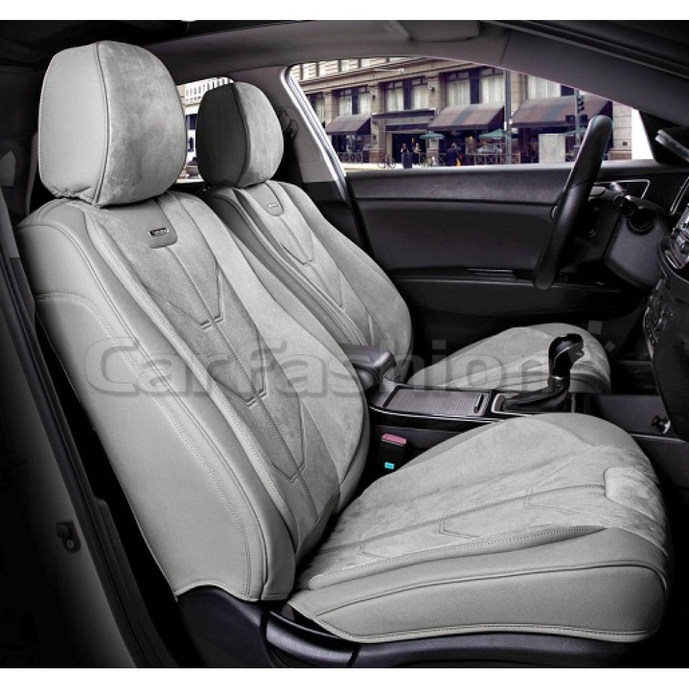 Чохли на передні сидіння автомобіля CarFashion Start front, сірий / сірий / сірий преміум класу виготовлені з високоякісного автомобільного матеріалу штучна замша плюс екошкіра. Завдяки вишуканому дизайну каркасних чохлів ви за хвилину пере утворите ваш салон в незабутній вид. Чохли дуже легко і швидко кріпляться, і вам не знадобиться допомоги в установці. Універсальні чохли CarFashion прекрасно поєднуються як з шкіряним салоном, так і з тканинним. У вас є можливість вибрати будь-який колір, який вам максимально підійде.