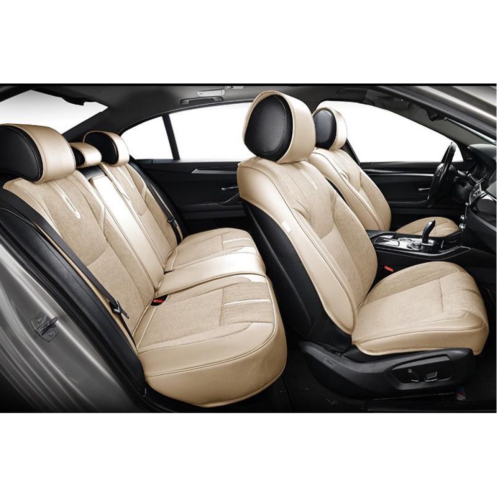 Матеріали преміум якості. Структура чохлів має три шари: верхня частина екошкіра/жаккард преміум класу; нижня частина - міцна підкладка поліестер; центральна частина 10мм підкладка.