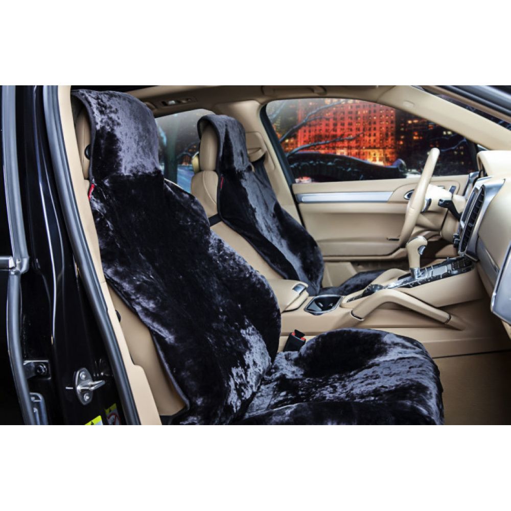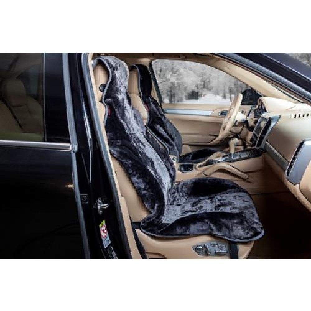 Хутряна накидка на сидіння з овечої шкури чорна, (Furseat)