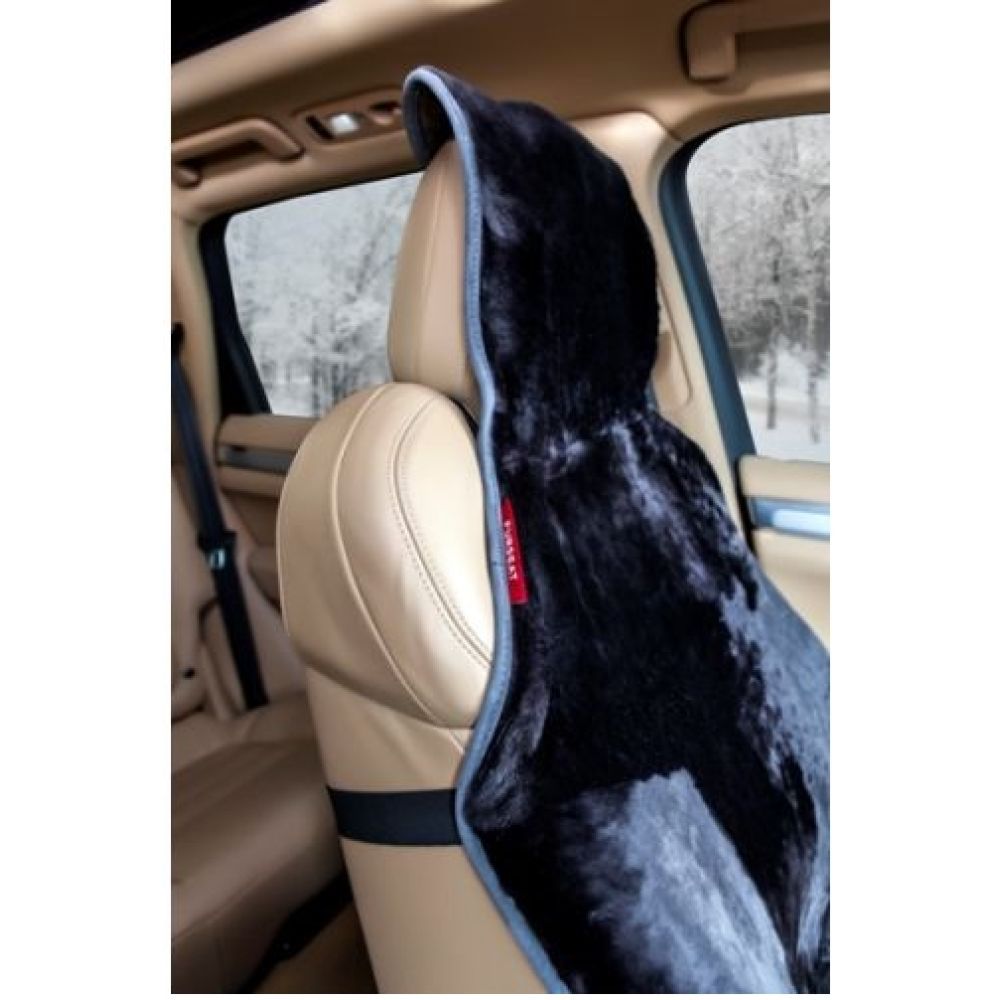 Хутряна накидка для передніх сидінь (Furseat) чорна з натуральної південно африканської овчини вироблено в Туреччині. Завдяки оригінальній системі кріплення накидка надійно тримається як на шкіряних, так і на тканинних сидіннях. Ці накидки доступні в чотирьох кольорах бежевий, чорний, коричневий, темно-сірий.