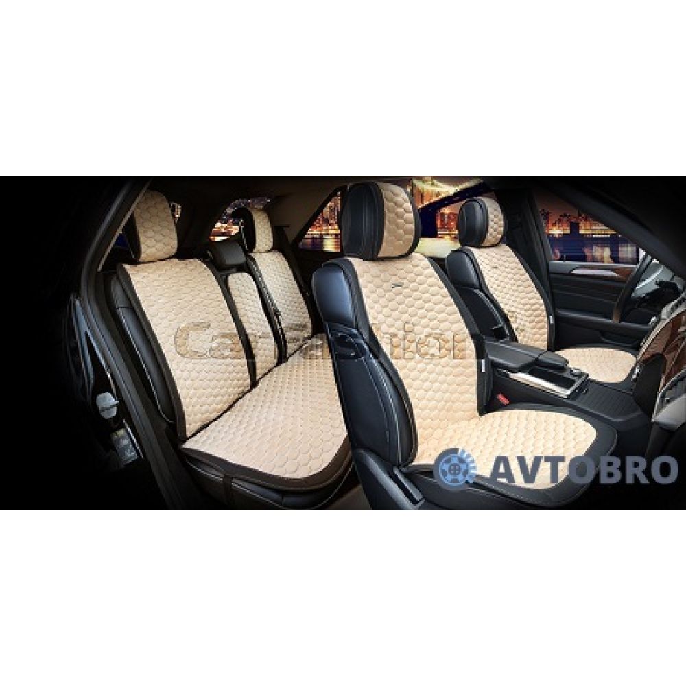 Комфорт. Верхня частина накидок м'яка приємна на дотик алькантара. Можна використовувати як взимку так і влітку. Влітку тканина дихає і не парить. Взимку завдяки спеціальній структури дуже приємно сидіти при будь-якій температурі.
