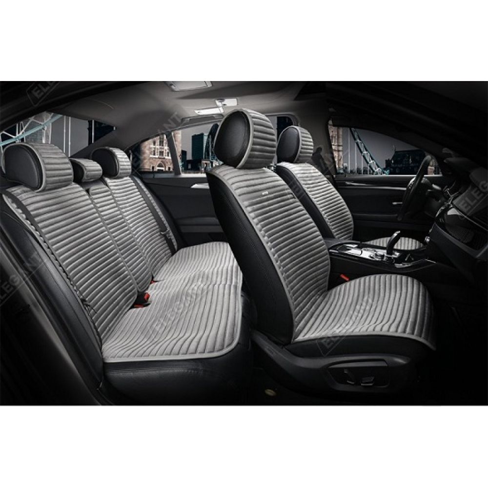 Комплект універсальних накидок на сидіння автомобіля Maxi Napoli, сірі Elegant преміум класу. Виготовлені накидки з екологічного високоякісного автомобільного велюру. Завдяки вишуканому дизайну накидок ви за хвилину поміняєте ваш салон в незабутній вид. Накидки дуже легко і швидко кріпляться, і вам не знадобиться допомоги в установці. Накидки Elegant прекрасно поєднуються як з шкіряним салоном, так і з тканинним. У вас є можливість вибрати будь-який колір, який вам максимально підійде.