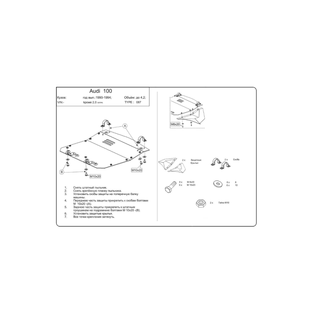 Защита двигателя для Audi A6 C4 '94-97, V-1,8; 2,8; 4,2і, (Кольчуга)