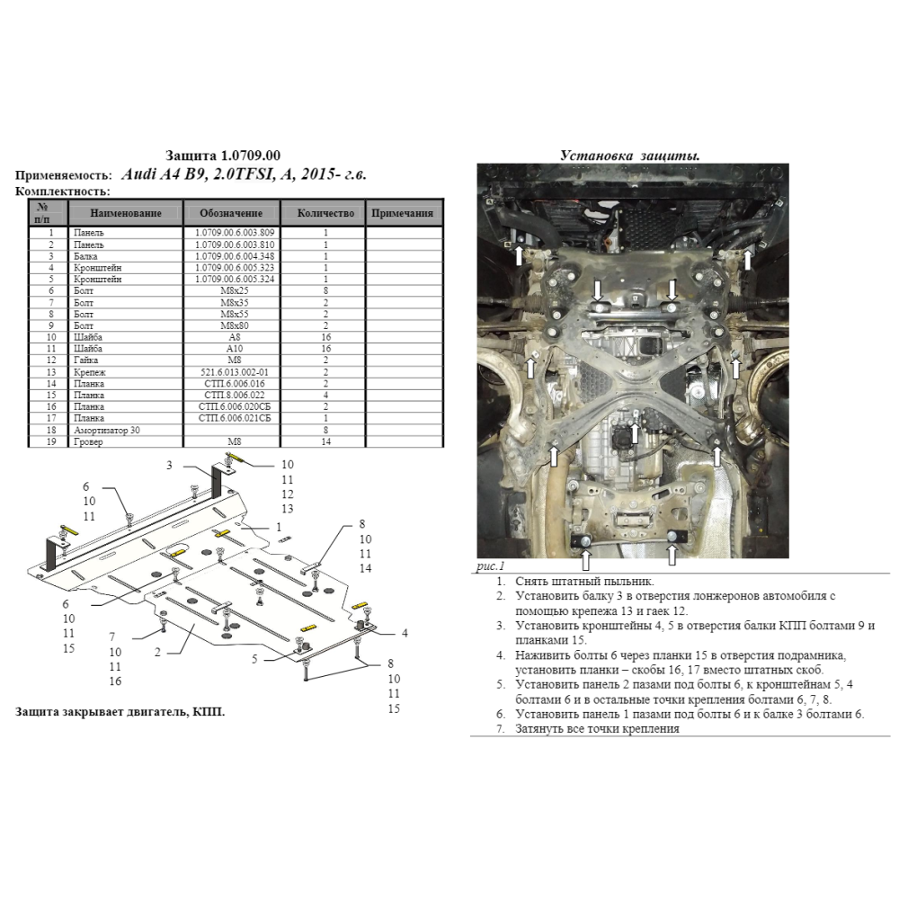 Защита двигателя, радиатора и КПП для Audi A4 '15-, V-2,0TFSI, (Кольчуга)