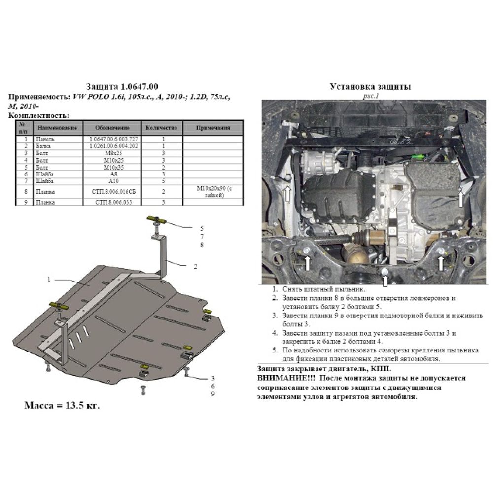 Установка и крепление – защита двигателя Кольчуга устанавливается в штатные места на днище автомобиля с помощью специальных крепежей, которые идут в комплекте и предусмотрены заводом производителя. В установке не понадобится дополнительно дорабатывать сверлить сваривать и так далее.