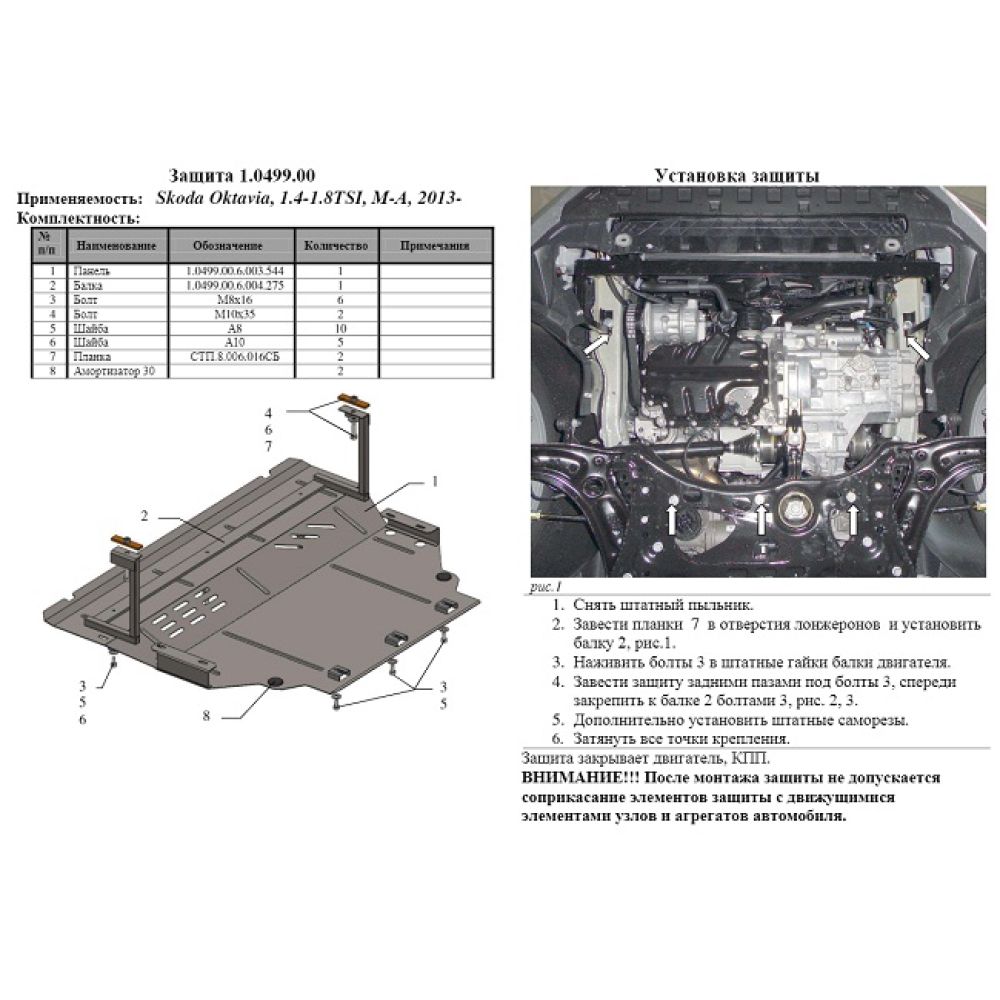 Защита двигателя, радиатора и КПП для Skoda Octavia A7 '13-, V-все, (Кольчуга)
