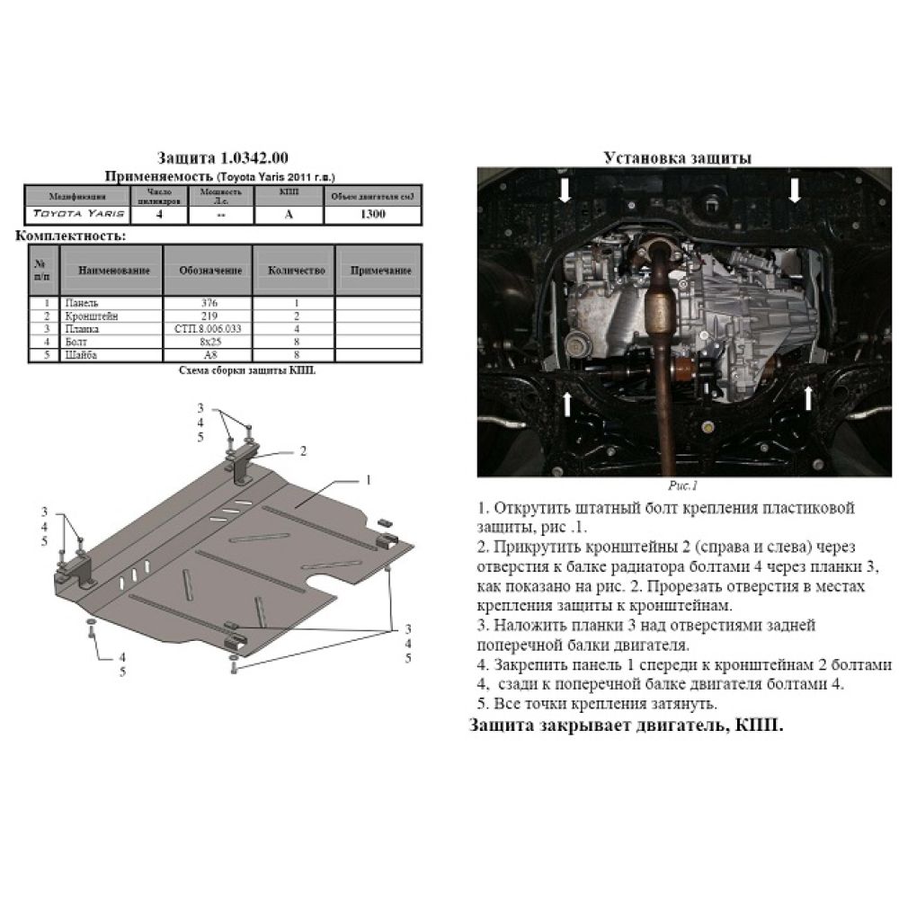 Защита двигателя, радиатора и КПП для Toyota Yaris III 11-, V-все, (Кольчуга)