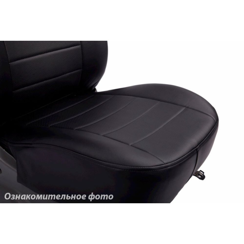 Материал авточехлов – используется только экологически чистая и гипоаллергенная экокожа (Аригон). На ощупь экокожа очень приятная мягкая и с трудом можно отличить от натуральной кожи. Центральная часть чехлов вшита перфорированная экокожа, что придает салону оригинальный вид, и для того чтобы в жаркие дни не прело.