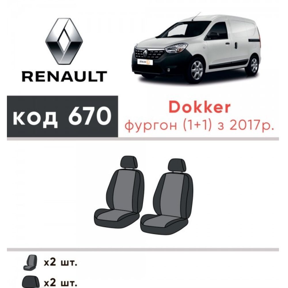 Авточехлы для салона Renault Dokker '17- (1+1) (Элегант)