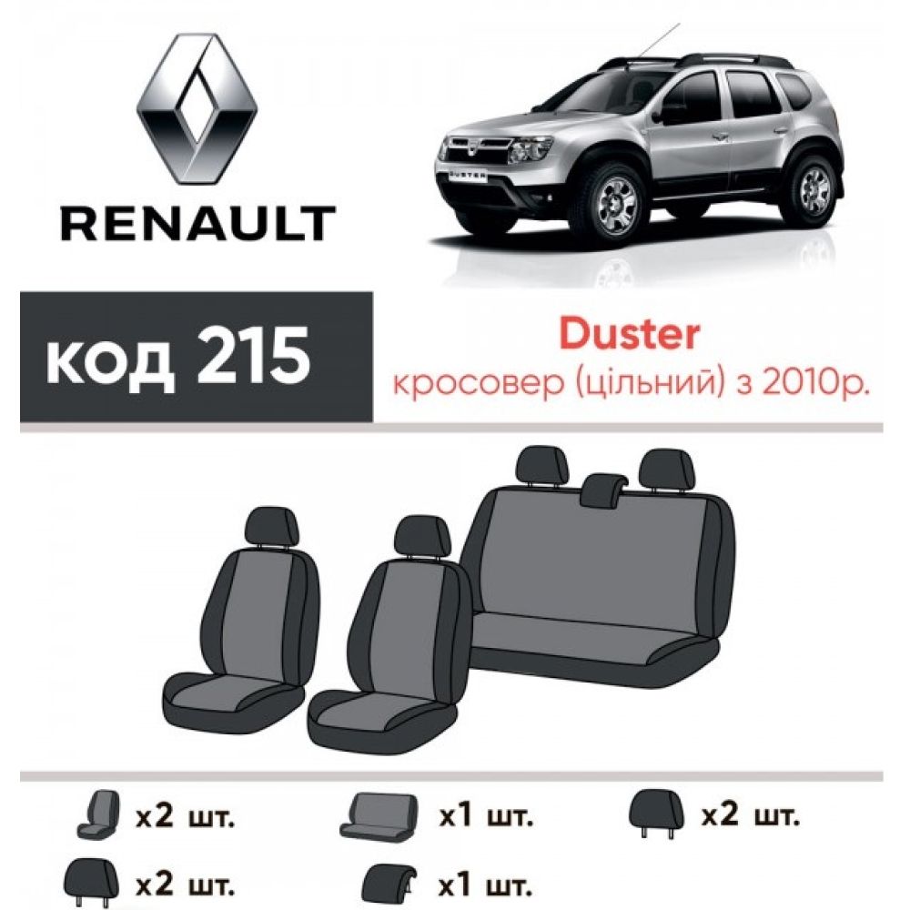 Авточехлы для салона Renault Duster '10-14, с цельной спинкой (Элегант)