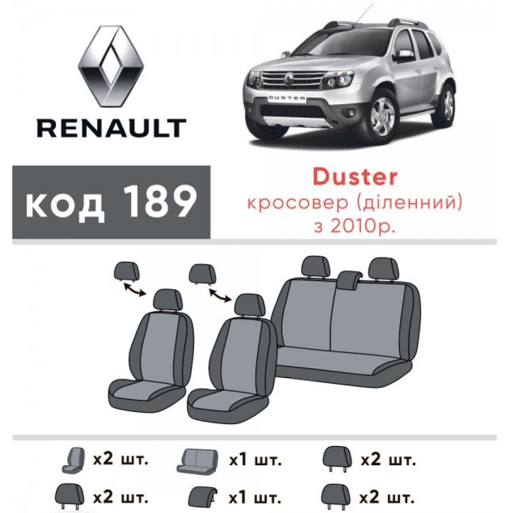 Авточехлы для салона Renault Duster '10-14, с деленой спинкой (Элегант)