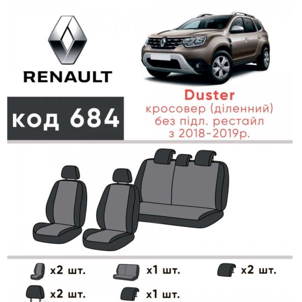 Авточехлы для салона Renault Duster '18-, с раздельной спинкой (Элегант)