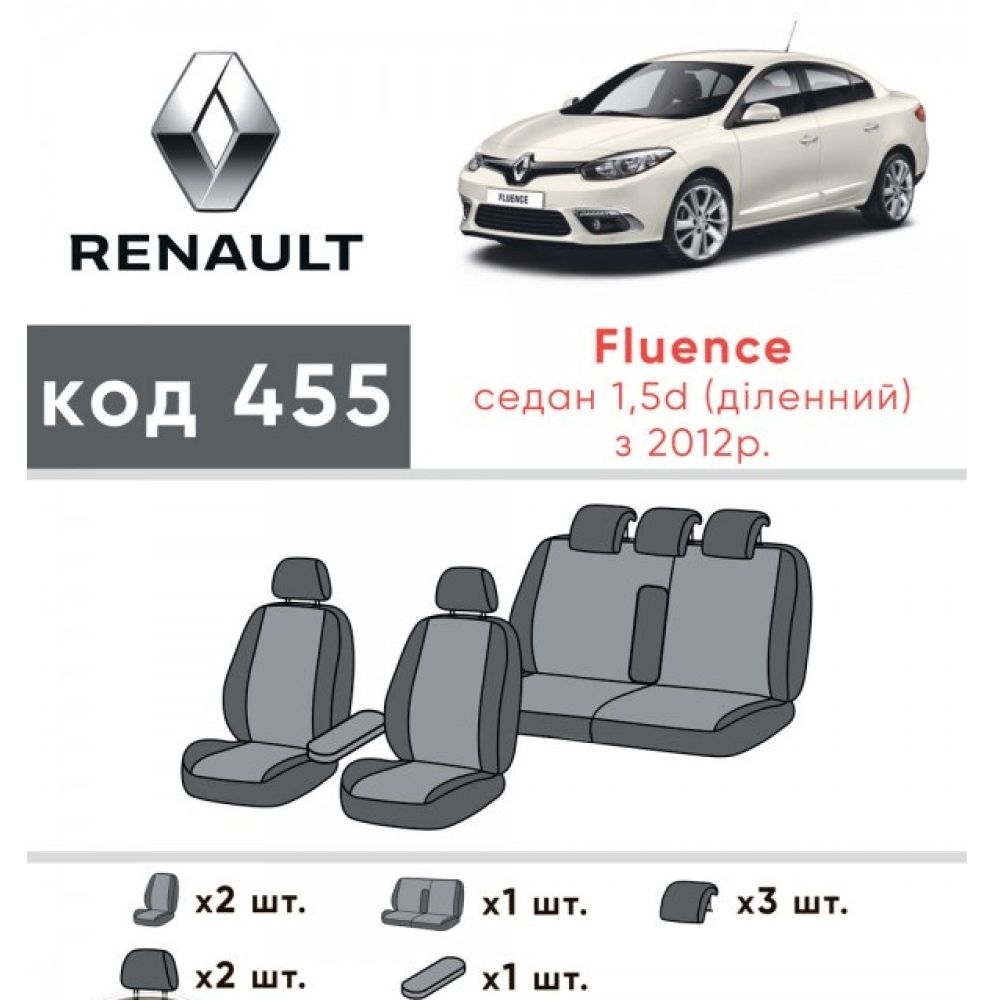 Авточехлы для салона Renault Fluence '09-12, 1.5d, c деленой спинкой (Элегант)