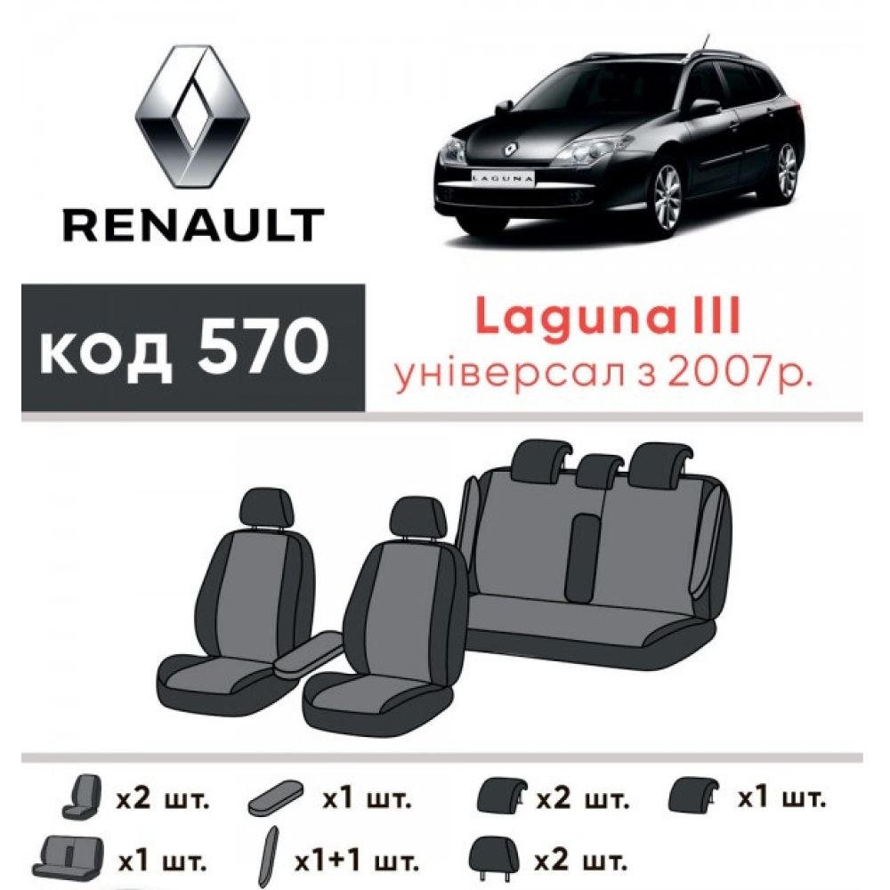 Авточехлы для салона Renault Laguna '07-15, универсал, c деленой спинкой (Элегант)