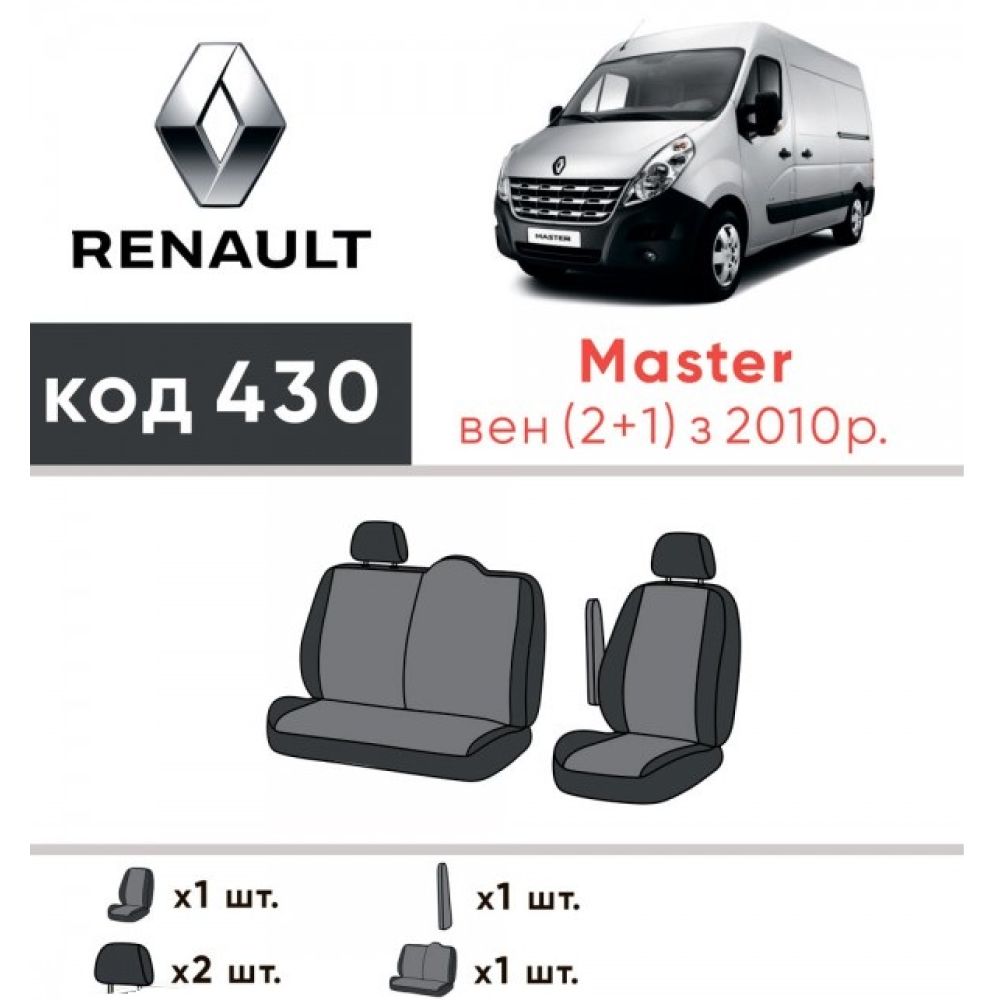 Модельные авточехлы пошиты идеально для Renault Master '10- (1+2) (Элегант), и по этому повторяет контуры родных сидений в идеале.