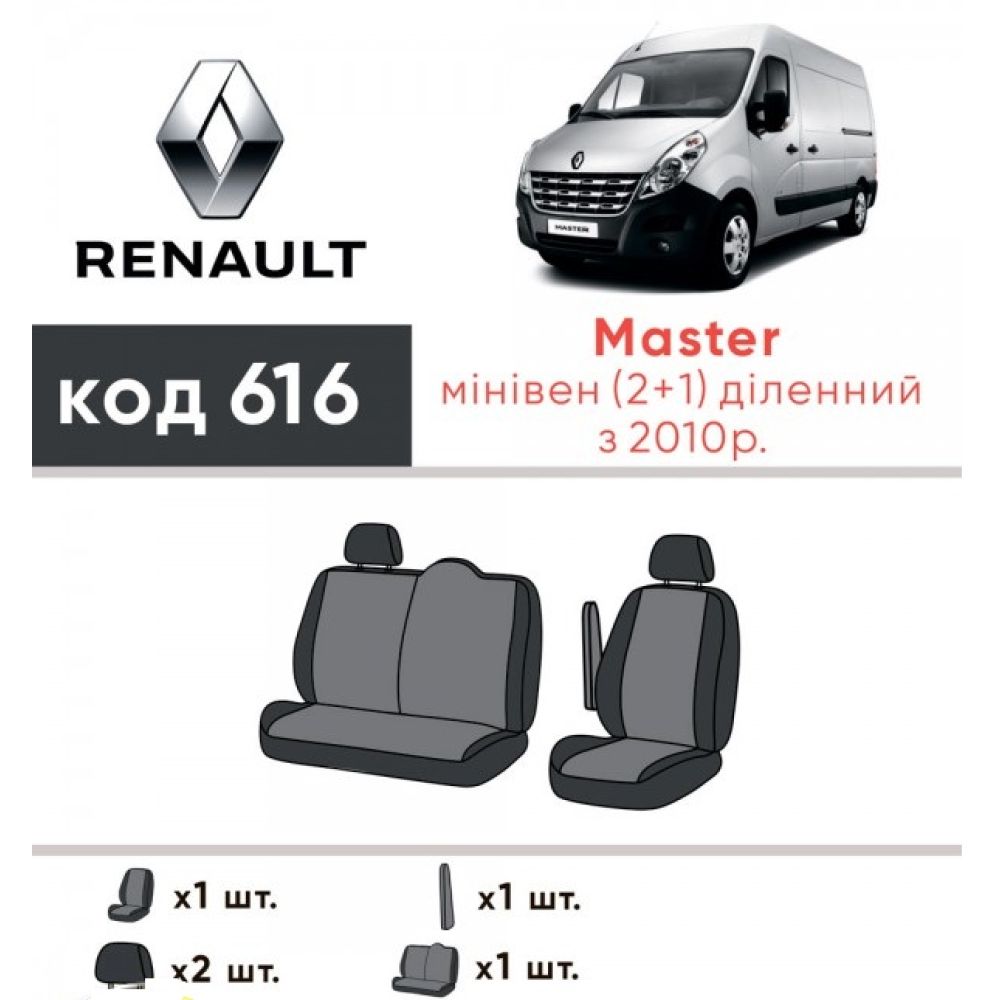 Авточехлы для салона Renault Master '10- (1+2), с раздельным сидением (Элегант)