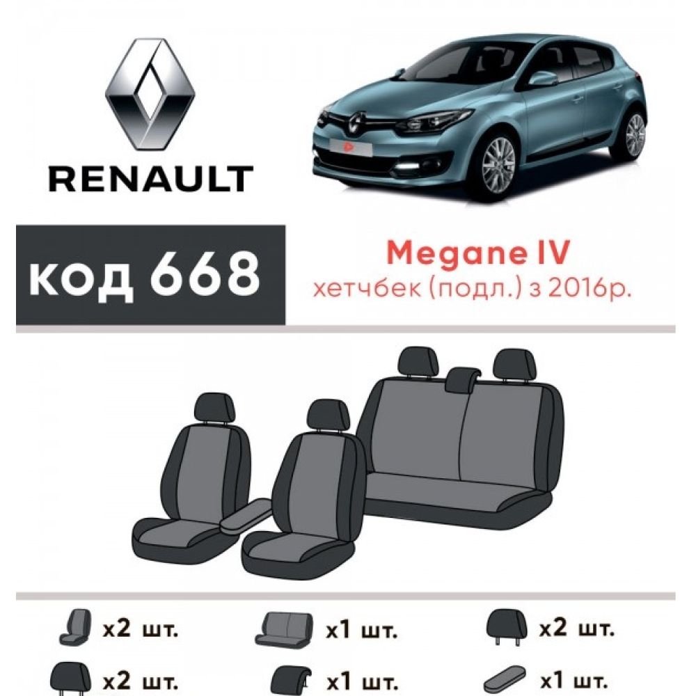 Авточехлы для салона Renault Megane '16-, с задним подлокотником (Элегант)