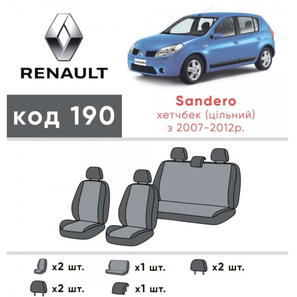 Модельные авточехлы пошиты идеально для Renault Sandero '08-12, с цельной спинкой (Элегант), и по этому повторяет контуры родных сидений в идеале.