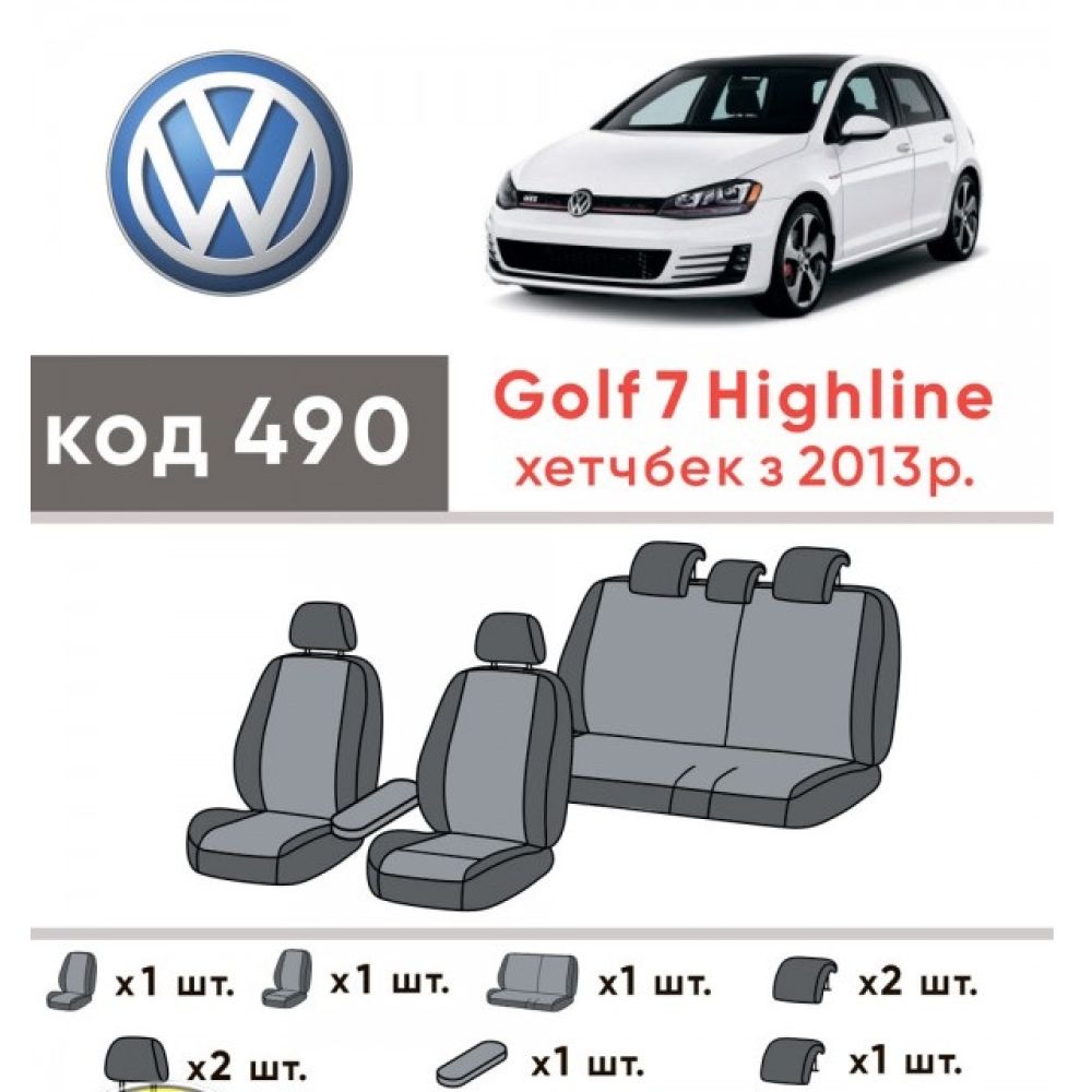 Модельные авточехлы пошиты идеально для Volkswagen Golf VII '12-, без заднего подлокотника (Элегант), и по этому повторяет контуры родных сидений в идеале.