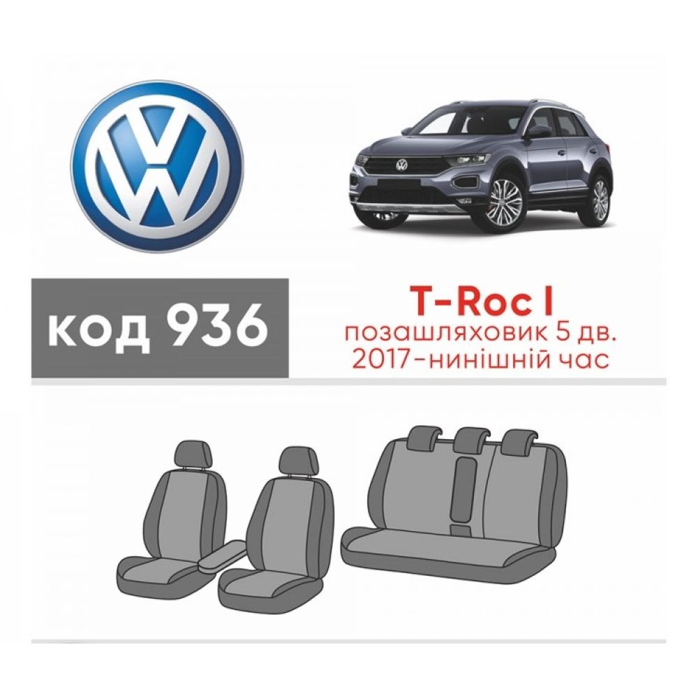 Авточехлы для салона Volkswagen T-Roc '18-, из экокожи Eco Prestige (Элегант)