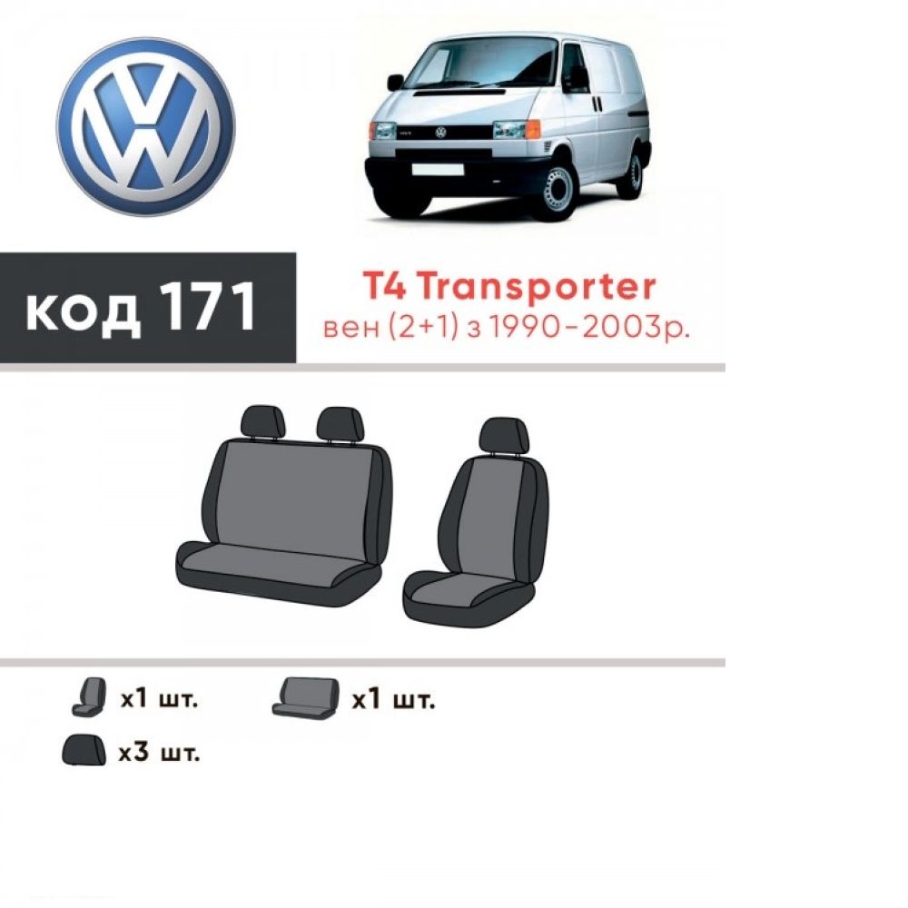 Авточехлы для салона Volkswagen Transporter T4 '90-03 (1+2), из экокожи Eco Prestige (Элегант)