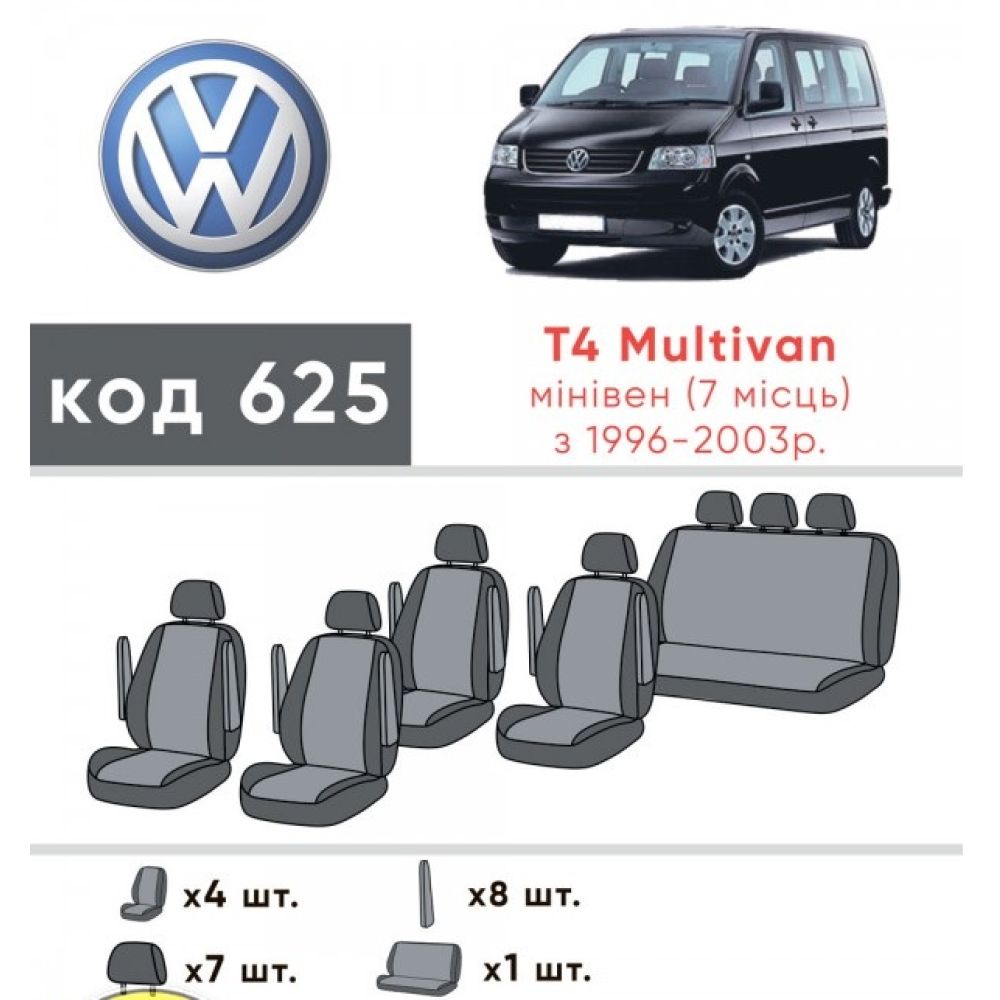 Модельные авточехлы пошиты идеально для Volkswagen Transporter T4 '90-03 7 мест (Элегант), и по этому повторяет контуры родных сидений в идеале.