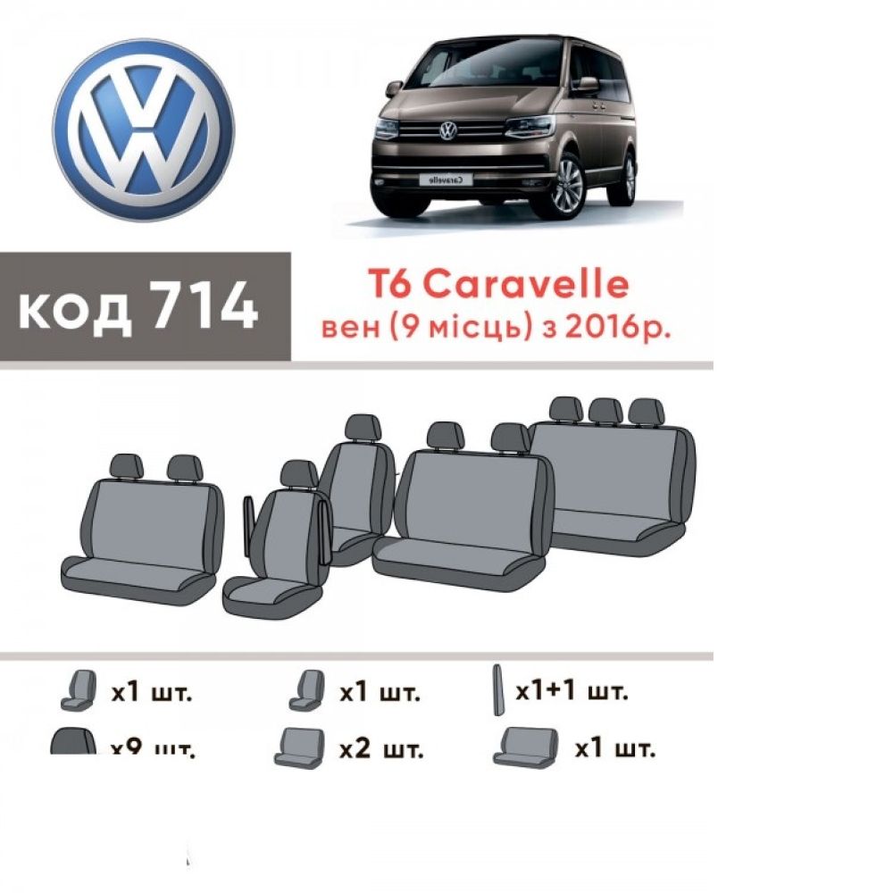 Авточехлы для салона Volkswagen Transporter T6 '15- (9 мест), из экокожи Eco Prestige (Элегант)