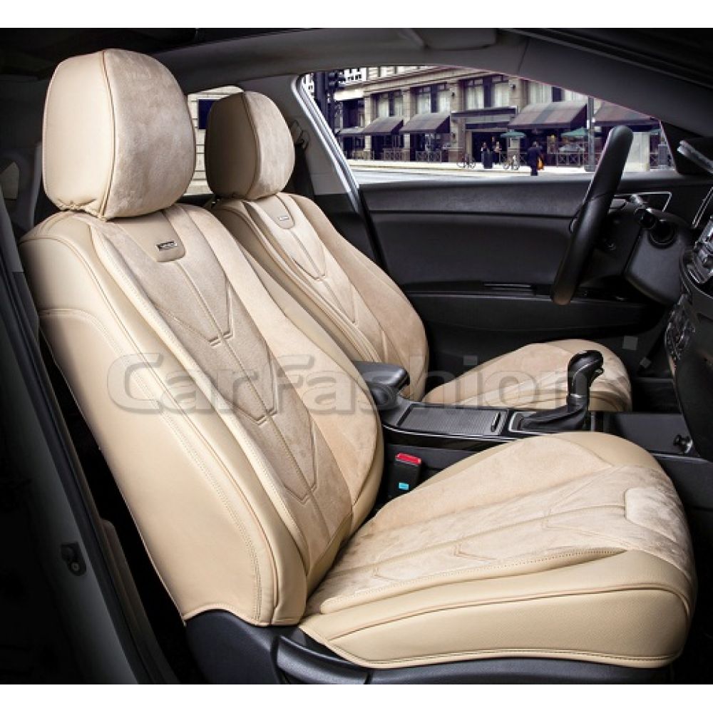 Чехлы на передние сиденья автомобиля CarFashion Start front, бежевый / бежевый / бежевый премиум класса изготовлены из высококачественного автомобильного материала искусственная замша плюс экокожа. Благодаря изысканному дизайну каркасных чехлов вы за минуту пере образуете ваш салон в незабываемый вид. Чехлы очень легко и быстро крепятся, и вам не понадобится помощи в установке. Универсальные чехлы CarFashion прекрасно сочетаются как с кожаным салоном, так и с тканевым. У вас есть возможность выбрать любой цвет, который вам максимально подойдет.