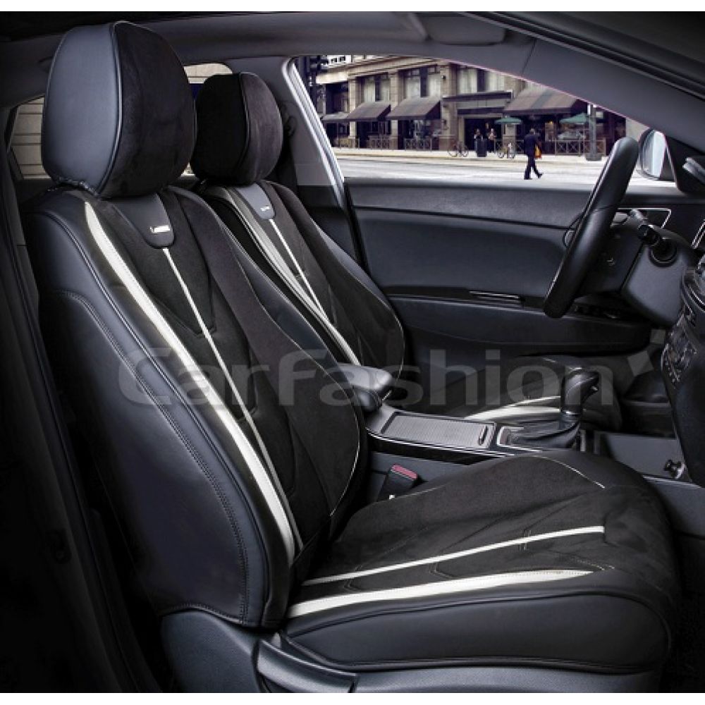 Чехлы на передние сиденья автомобиля CarFashion Start front, черный / черный / бежевый премиум класса изготовлены из высококачественного автомобильного материала искусственная замша плюс экокожа. Благодаря изысканному дизайну каркасных чехлов вы за минуту пере образуете ваш салон в незабываемый вид. Чехлы очень легко и быстро крепятся, и вам не понадобится помощи в установке. Универсальные чехлы CarFashion прекрасно сочетаются как с кожаным салоном, так и с тканевым. У вас есть возможность выбрать любой цвет, который вам максимально подойдет.