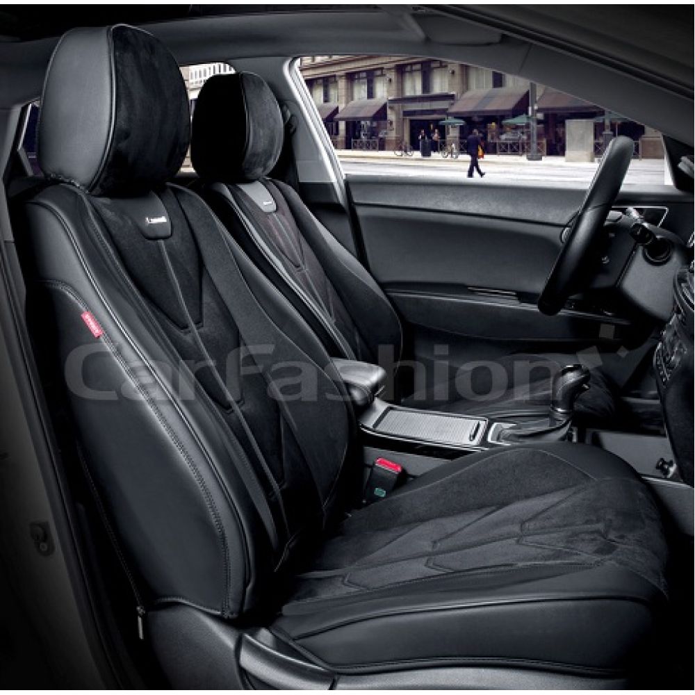 Чехлы на передние сиденья автомобиля CarFashion Start front, черный / черный / черный премиум класса изготовлены из высококачественного автомобильного материала искусственная замша плюс экокожа. Благодаря изысканному дизайну каркасных чехлов вы за минуту пере образуете ваш салон в незабываемый вид. Чехлы очень легко и быстро крепятся, и вам не понадобится помощи в установке. Универсальные чехлы CarFashion прекрасно сочетаются как с кожаным салоном, так и с тканевым. У вас есть возможность выбрать любой цвет, который вам максимально подойдет.