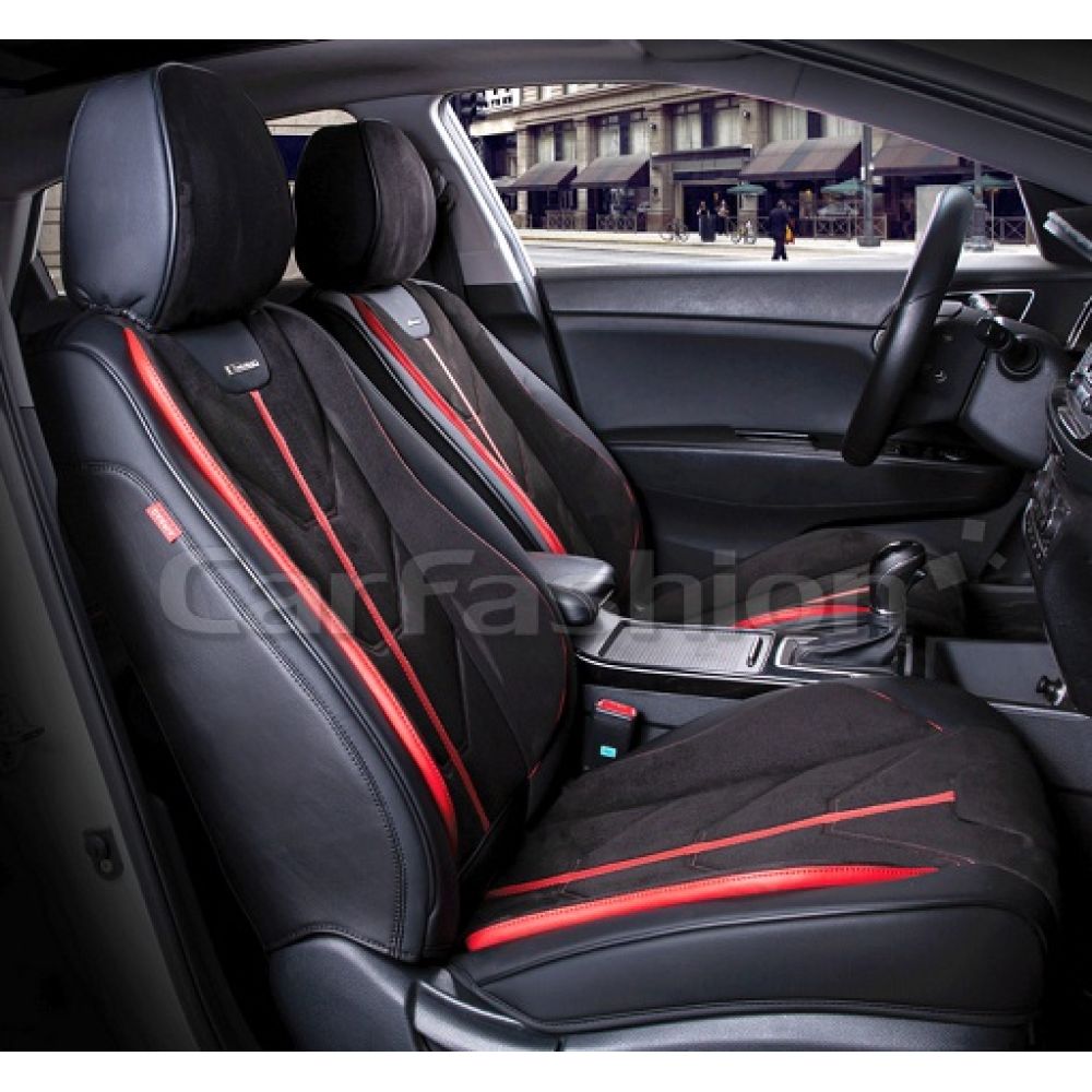 Чехлы на передние сиденья автомобиля CarFashion Start front, черный / черный / красный премиум класса изготовлены из высококачественного автомобильного материала искусственная замша плюс экокожа. Благодаря изысканному дизайну каркасных чехлов вы за минуту пере образуете ваш салон в незабываемый вид. Чехлы очень легко и быстро крепятся, и вам не понадобится помощи в установке. Универсальные чехлы CarFashion прекрасно сочетаются как с кожаным салоном, так и с тканевым. У вас есть возможность выбрать любой цвет, который вам максимально подойдет.