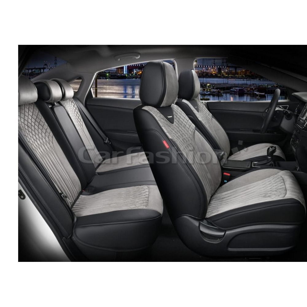 Универсальные чехлы на сиденья автомобиля CarFashion Shell plus, черный / серый / черный премиум класса изготовлены из высококачественного автомобильного материала искусственная замша плюс экокожа. Благодаря изысканному дизайну каркасных чехлов вы за минуту пере образуете ваш салон в незабываемый вид. Авточехлы очень легко и быстро крепятся, и вам не понадобится помощи в установке. Универсальные чехлы CarFashion прекрасно сочетаются как с кожаным салоном, так и с тканевым. У вас есть возможность выбрать любой цвет, который вам максимально подойдет.