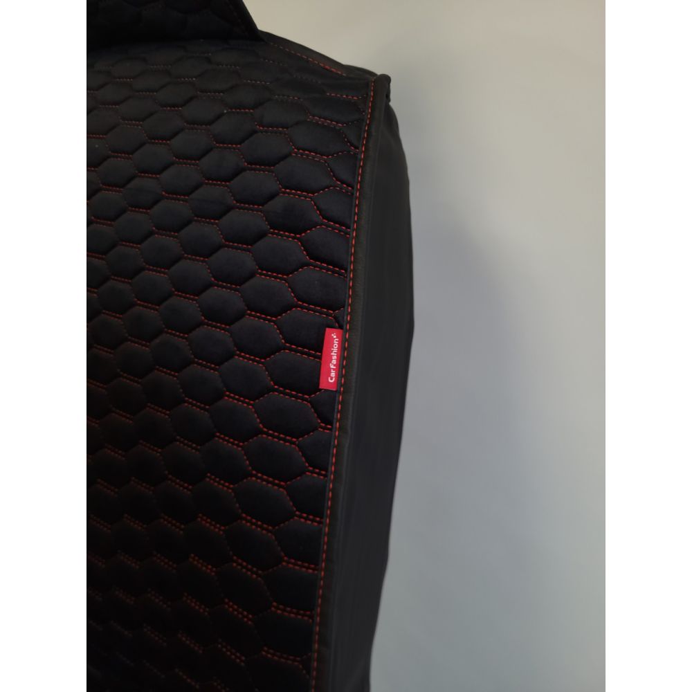 Универсальные чехлы на сиденья автомобиля CarFashion Sota plus, черный / черный / красный, премиум класса изготовлены из высококачественного автомобильного материала премиум велюр комбинация с экокожа. Благодаря изысканному дизайну универсальных чехлов вы за минуту пере образуете ваш салон в незабываемый вид. Авточехлы очень легко и быстро крепятся, и вам не понадобится помощи в установке. Универсальные чехлы CarFashion прекрасно сочетаются как с кожаным салоном, так и с тканевым. У вас есть возможность выбрать любой цвет, который вам максимально подойдет.