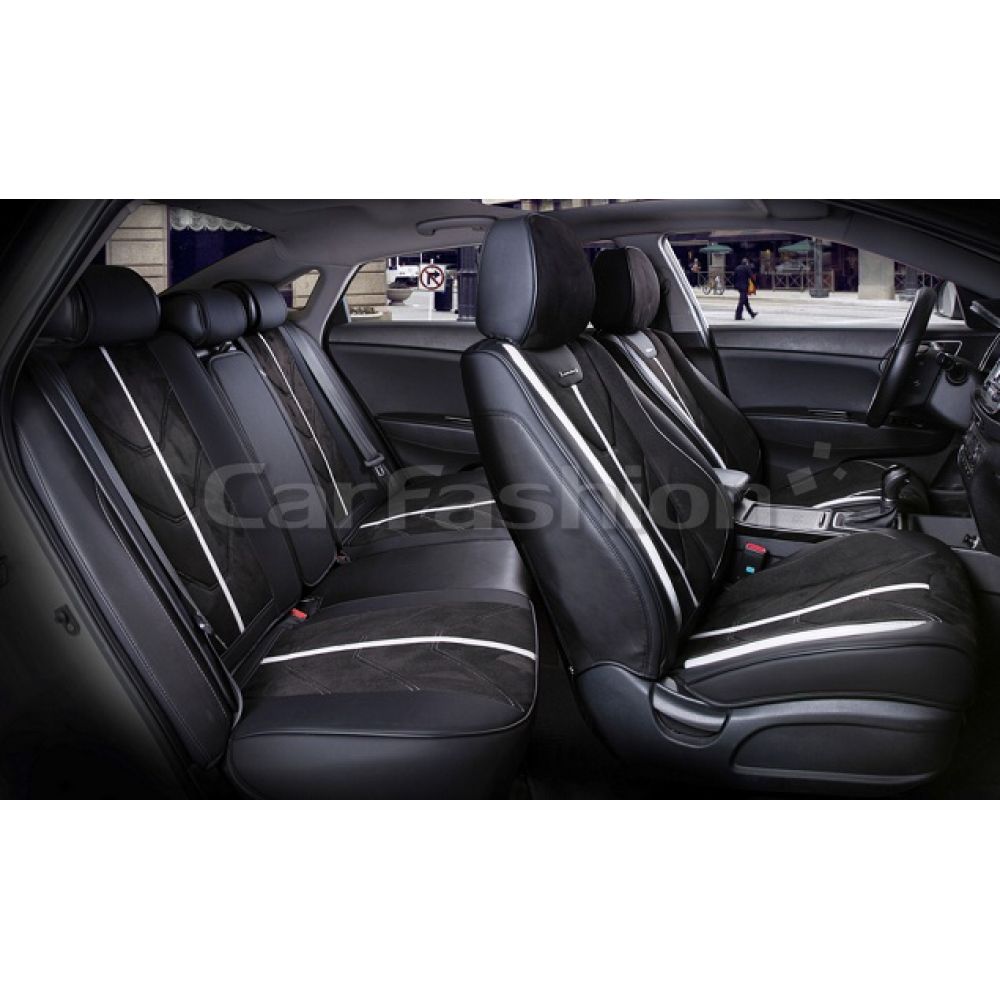 Универсальные чехлы на сиденья автомобиля CarFashion Start plus, черный / черный / бежевый премиум класса изготовлены из высококачественного автомобильного материала искусственная замша плюс экокожа. Благодаря изысканному дизайну каркасных чехлов вы за минуту пере образуете ваш салон в незабываемый вид. Авточехлы очень легко и быстро крепятся, и вам не понадобится помощи в установке. Универсальные чехлы CarFashion прекрасно сочетаются как с кожаным салоном, так и с тканевым. У вас есть возможность выбрать любой цвет, который вам максимально подойдет.