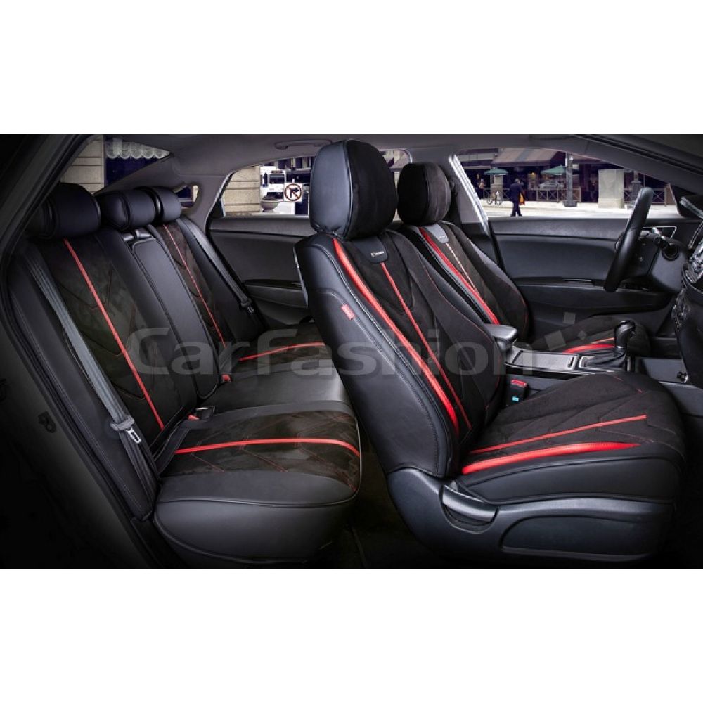 Универсальные чехлы на сиденья автомобиля CarFashion Start plus, черный / черный / красный премиум класса изготовлены из высококачественного автомобильного материала искусственная замша плюс экокожа. Благодаря изысканному дизайну каркасных чехлов вы за минуту пере образуете ваш салон в незабываемый вид. Авточехлы очень легко и быстро крепятся, и вам не понадобится помощи в установке. Универсальные чехлы CarFashion прекрасно сочетаются как с кожаным салоном, так и с тканевым. У вас есть возможность выбрать любой цвет, который вам максимально подойдет.