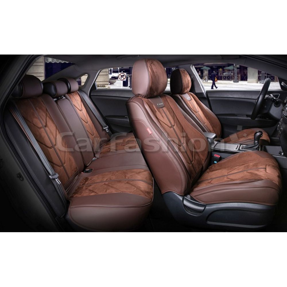 Универсальные чехлы на сиденья автомобиля CarFashion Start plus, кофе / кофе / кофе премиум класса изготовлены из высококачественного автомобильного материала искусственная замша плюс экокожа. Благодаря изысканному дизайну каркасных чехлов вы за минуту пере образуете ваш салон в незабываемый вид. Авточехлы очень легко и быстро крепятся, и вам не понадобится помощи в установке. Универсальные чехлы CarFashion прекрасно сочетаются как с кожаным салоном, так и с тканевым. У вас есть возможность выбрать любой цвет, который вам максимально подойдет.