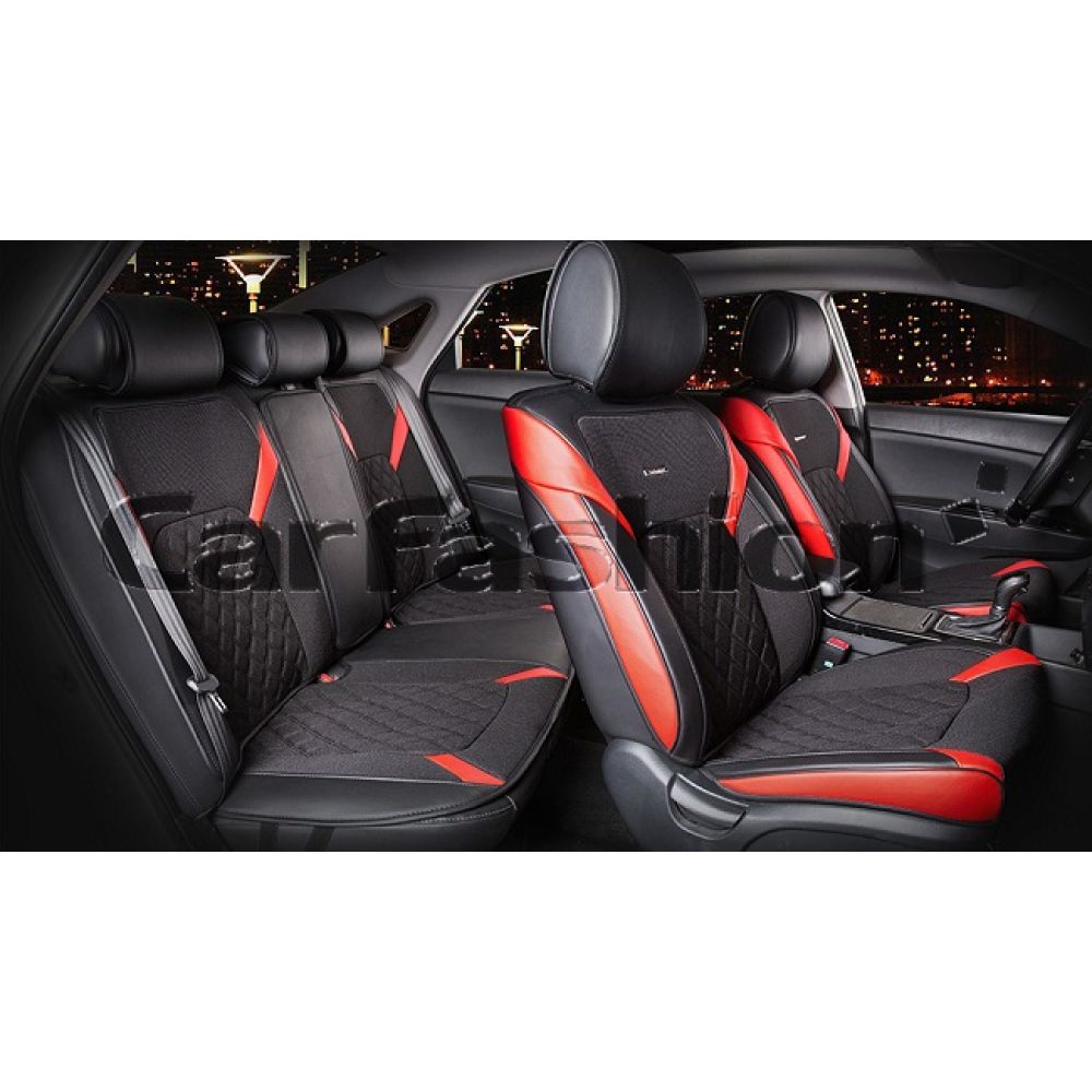 Универсальные чехлы на сиденья STING PLUS, красный/черный (CarFashion)