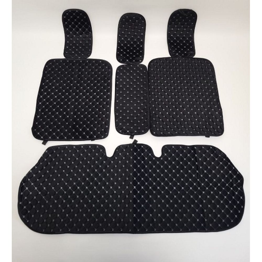 Материалы премиум качества. Структура чехлов имеет три слоя: верхняя часть прочный материал велюр премиум класса; нижняя часть – подкладка, противоскользящее покрытие; центральная часть 10 мм подкладка. Каркас чехлов и боковины велюр. Декоративная вышивка шелковой нитью.
