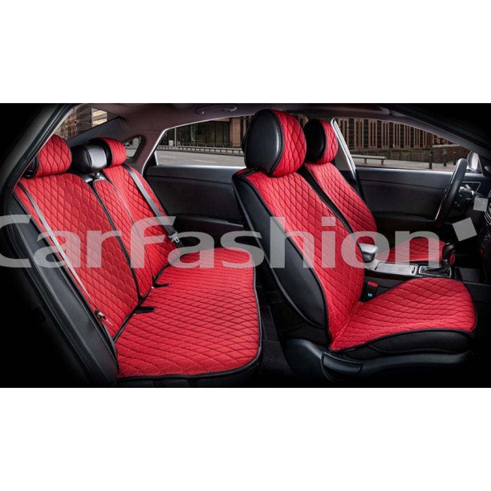 Комплект каркасных накидок на сидения автомобиля CarFashion CROWN красный / черный / красный премиум класса изготовлены из высококачественного автомобильного материала жаккард плюс экокожа. Благодаря изысканному дизайну каркасных накидок вы за минуту пере образуете ваш салон в незабываемый вид. Накидки очень легко и быстро крепятся, и вам не понадобится помощи в установке. Накидки CarFashion прекрасно сочетаются как с кожаным салоном, так и с тканевым. У вас есть возможность выбрать любой цвет, который вам максимально подойдет.