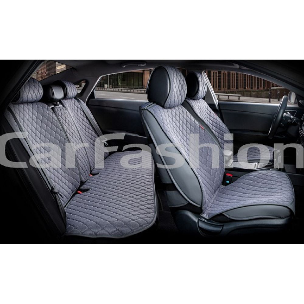 Комплект каркасных накидок на сидения автомобиля CarFashion CROWN серый / серый / темно-серый премиум класса изготовлены из высококачественного автомобильного материала жаккард плюс экокожа. Благодаря изысканному дизайну каркасных накидок вы за минуту пере образуете ваш салон в незабываемый вид. Накидки очень легко и быстро крепятся, и вам не понадобится помощи в установке. Накидки CarFashion прекрасно сочетаются как с кожаным салоном, так и с тканевым. У вас есть возможность выбрать любой цвет, который вам максимально подойдет.