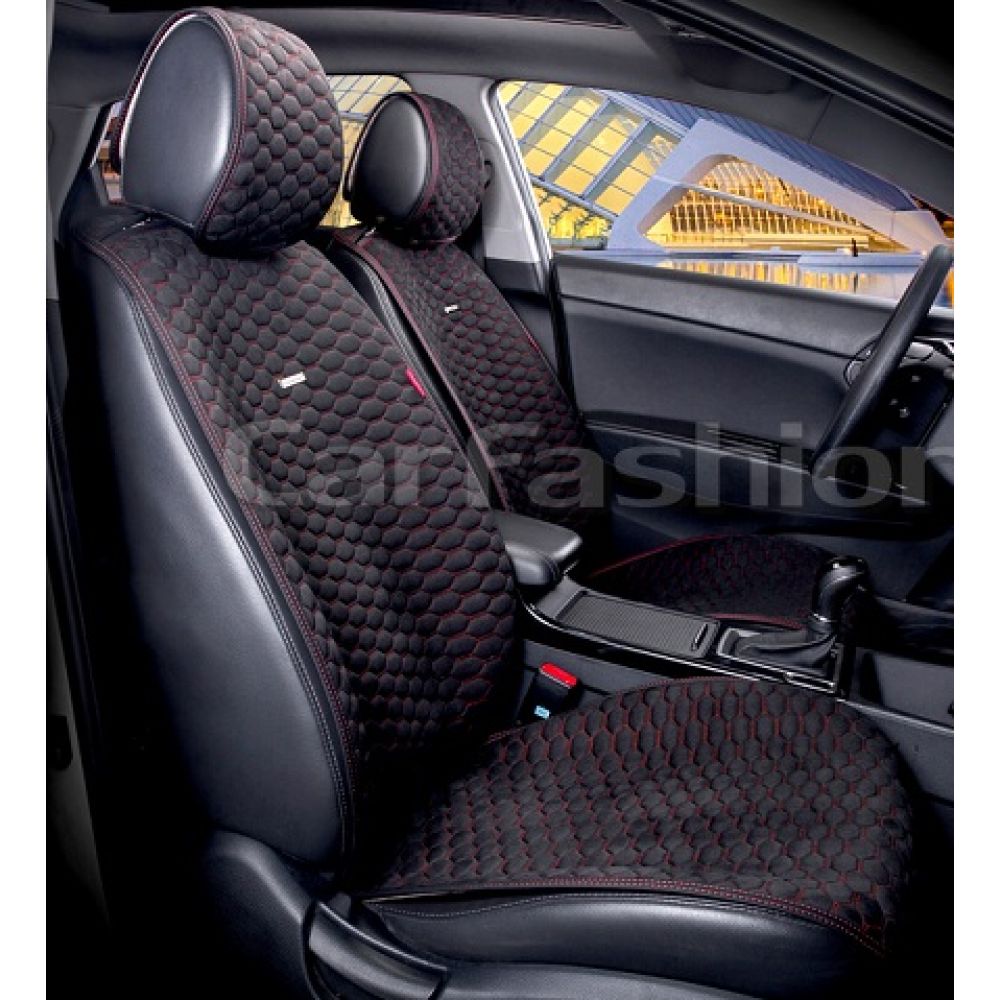 Накидки для сидений автомобиля CarFashion CAPRI PRO черный / черный / красный премиум изготовлены из высококачественной искусственной замша премиум класса. Благодаря изысканному дизайну накидок вы за минуту пере образуете ваш салон в незабываемый вид. Накидки очень легко и быстро крепятся, и вам не понадобится помощи в установке. Накидки CarFashion прекрасно сочетаются как с кожаным салоном, так и с тканевым. У вас есть возможность выбрать любой цвет, который вам максимально подойдет.