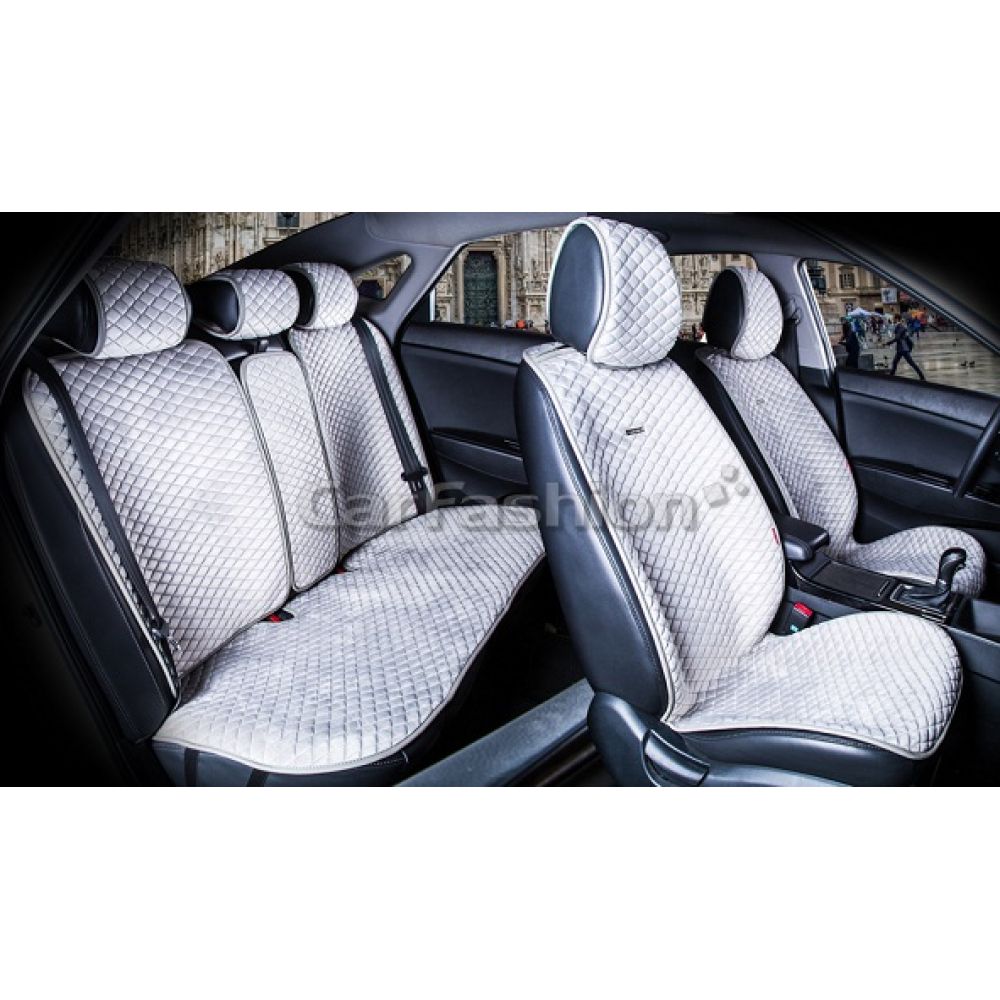 Комплект накидок для сидений автомобиля CarFashion City plus серый премиум класса изготовлены из высококачественного автомобильного велюра. Благодаря изысканному дизайну накидок вы за минуту пере образуете ваш салон в незабываемый вид. Накидки очень легко и быстро крепятся, и вам не понадобится помощи в установке. Накидки CarFashion прекрасно сочетаются как с кожаным салоном, так и с тканевым. У вас есть возможность выбрать любой цвет, который вам максимально подойдет.
