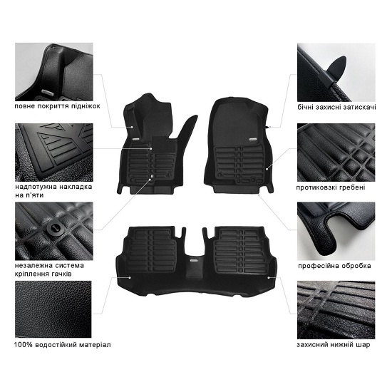 Коврики в салон автомобиля из экокожи для Kia Sorento MQ4 '20-, с экокожи черные (Skopa) премиум класса, не только имеет оригинальный внешний вид при этом защищает пол автомобиля от воды грязи и пыли, но и максимально добавляет роскоши салона авто. В производстве ковриков SKOPA разрабатываются форма и дизайн индивидуально каждого коврика. Используются новейшие технологии лазерного сканирования ковролина пола авто. После создается прототип коврика по данным сканирования. Прототип тестируется на авто, после вносятся корректировки для точного совпадения. Поэтому автомобильные коврики SKOPA повторяет все контуры ковролина вашего автомобиля, и закрывает 90% пола авто.
